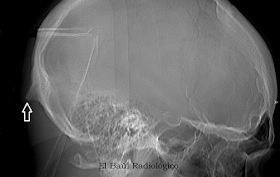FIGURA 1) El espolón occipital en una radiografía lateral de cráneo.